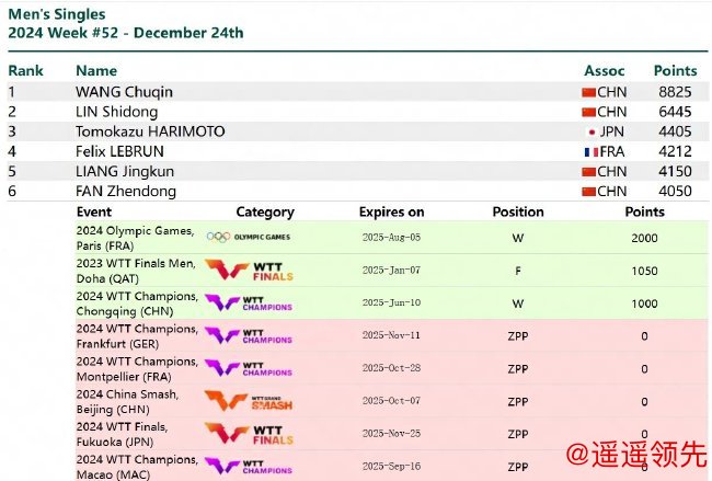 在国际乒联本周公布的最新一期世界排名中,樊振东排名第六,8个有效积分中有5个被赋0。