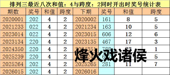 开奖总结:体彩成列三第2026015期奖号为:202。和值为:4,跨度为:2。